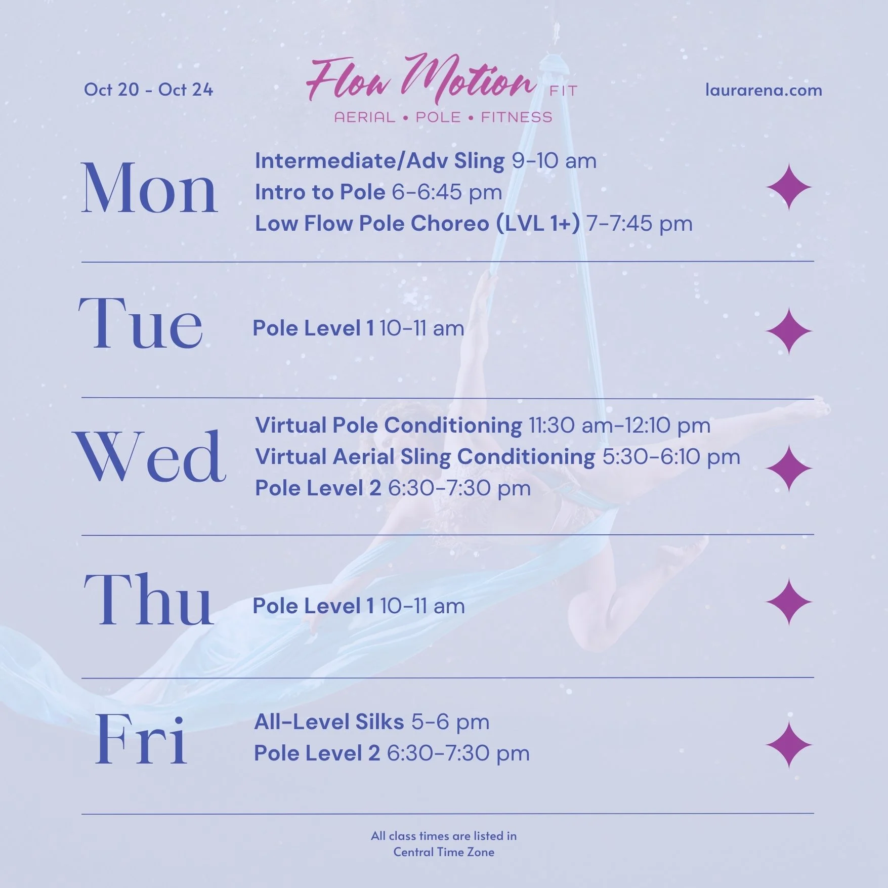 Flow Motion Fit offers small-group pole and aerial classes, in-person and online, designed to help you build strength, confidence, and flexibility at your own pace.